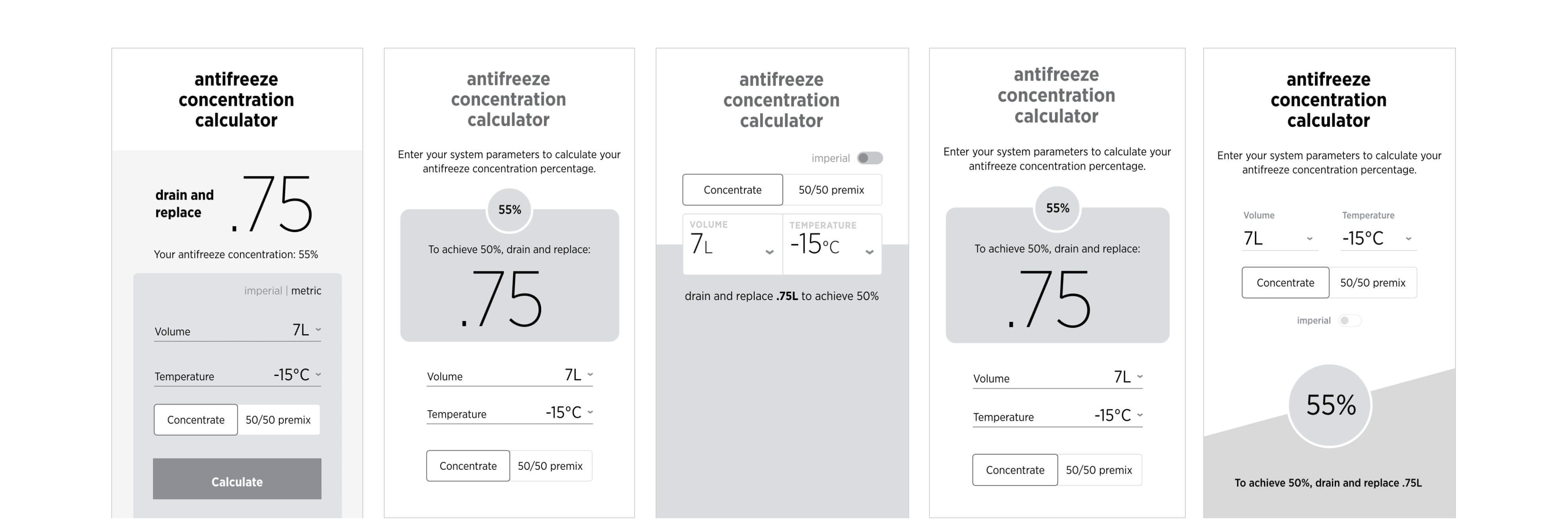 Having done the requisite discovery and strategy work to understand the requirements, wireframing came naturally. Due to the complexity surrounding the inputs and variations required for the calculations, each step of the way we asked ourselves how we could simplify the interactions until we arrived at the solution that most effectively reduced the perceived and real complexity of the tool by:
