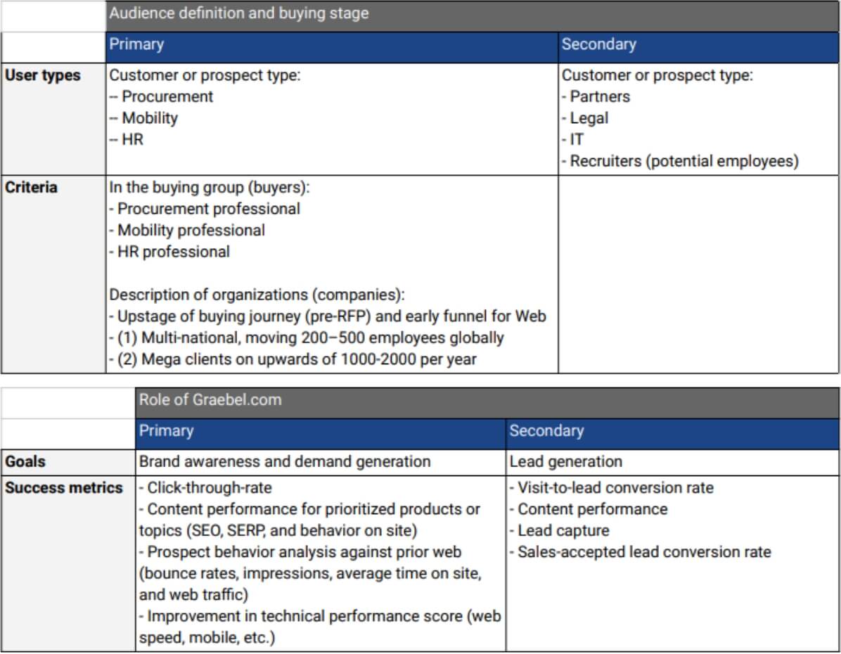 To ensure each decision about the site was informed by the insight we discovered, we created a few artifacts that defined our audience and their goals, needs, and tasks to align our team and the client around the job the website needed to do.