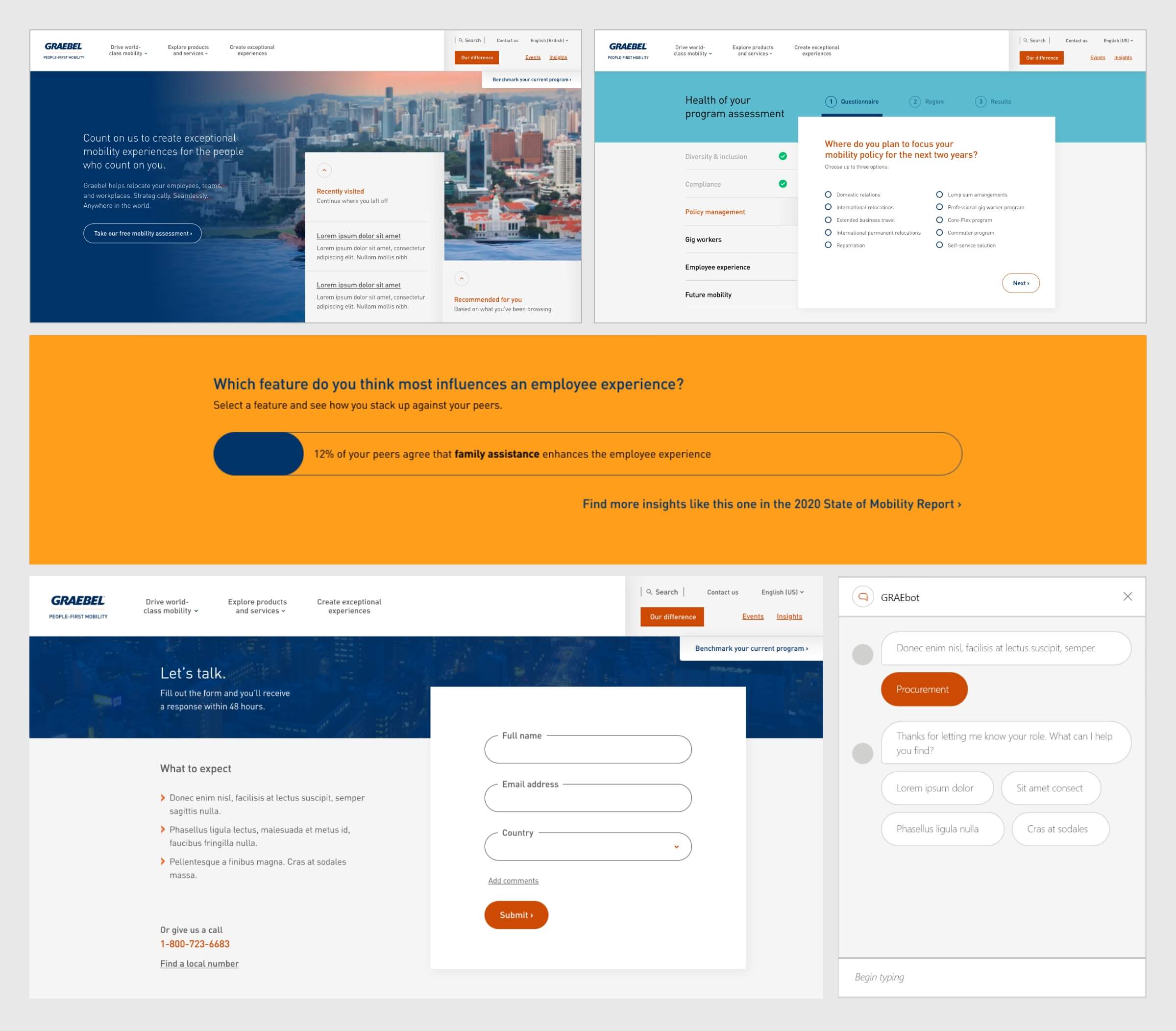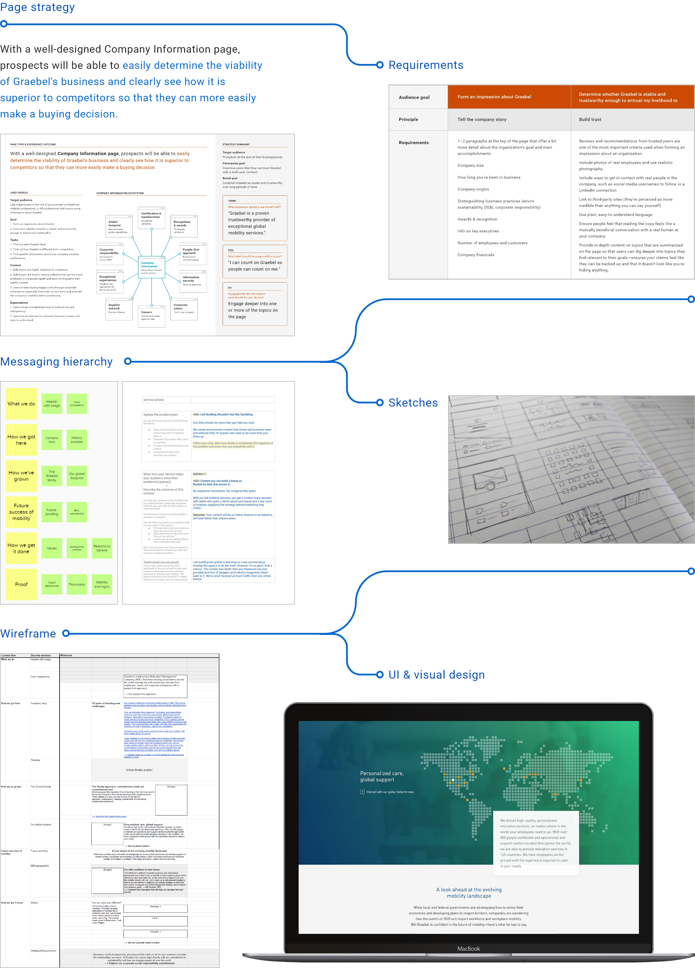We knew that we wouldn't be able to accomplish everything included in our strategy by day 1 launch of the site and that the build would need to be iterative over time. In order to keep our team—and Graebel's—focused on that ideal state that we would eventually evolve into, we created a tangible, sacrificial design vision prototype that demonstrated the strategy we were setting out so that Graebel could experience what they were agreeing to. The prototype serves as a guiding star, an interpretation of the strategy for every team member to rally around.