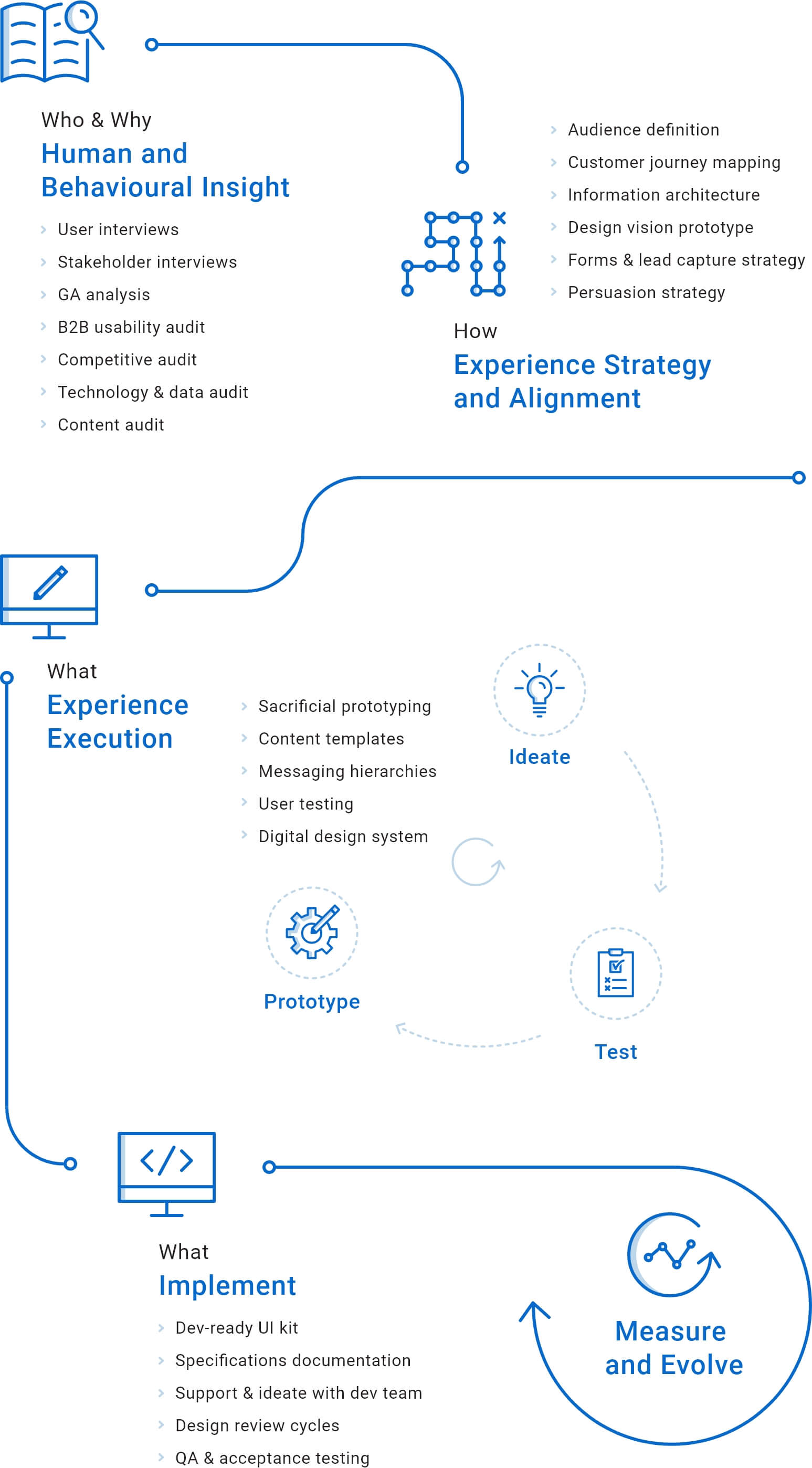 Our insight team (myself included) conducted stakeholder and user interviews to gain a deep understanding of prospect's needs, motivations and fuller life context in order to equip ourselves with the necessary criteria to continually measure our decisions against.