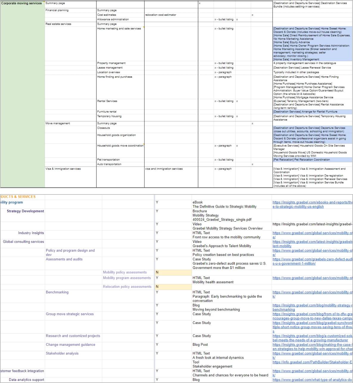 Having recently undergone a generalized service taxonomy exercise with our brand team, the information architecture activity was a matter of mapping all their discrete services to that taxonomy as well as figuring out how all the additional information available on the website fit into that structure.