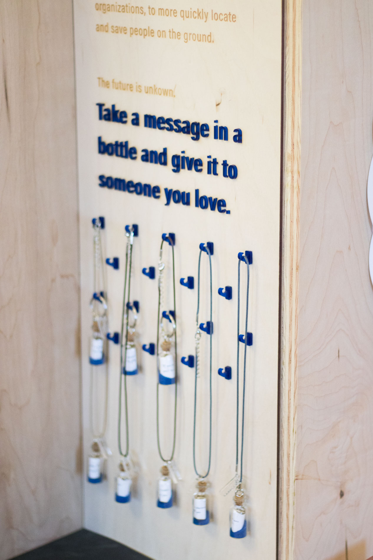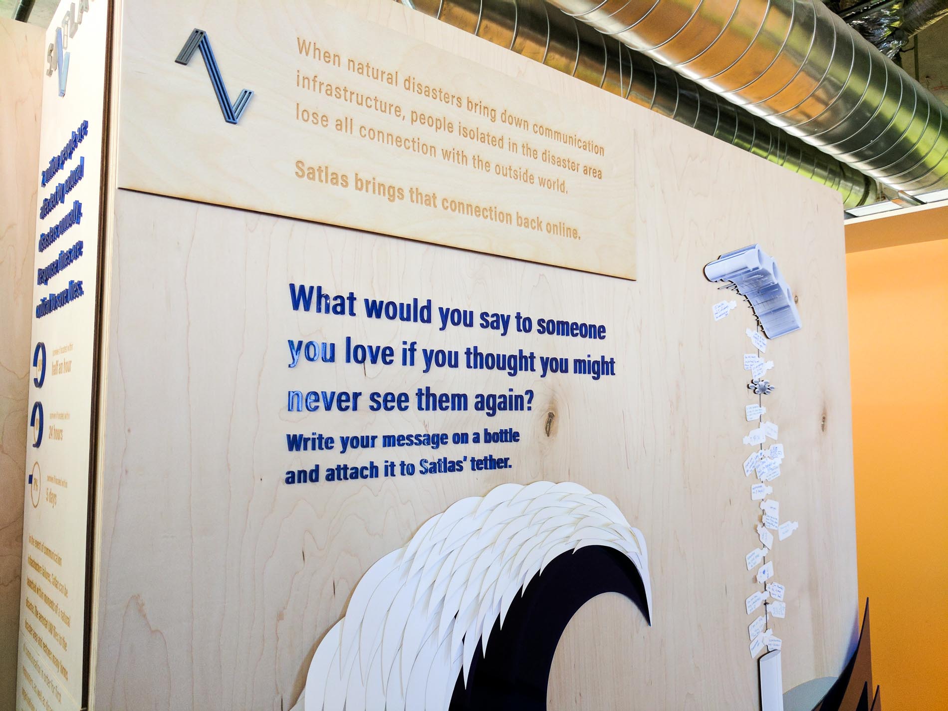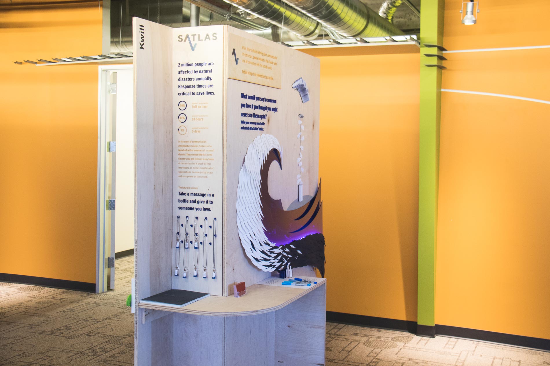 The following images are of a Satlas exhibit, which addresses an audience that identifies with our product as potential disaster victims. The intention of the exhibit is not to sell Satlas products, as the audience is not our primary target, but to bring awareness to the reality that the future is unknown, and now is the time to seize the day.