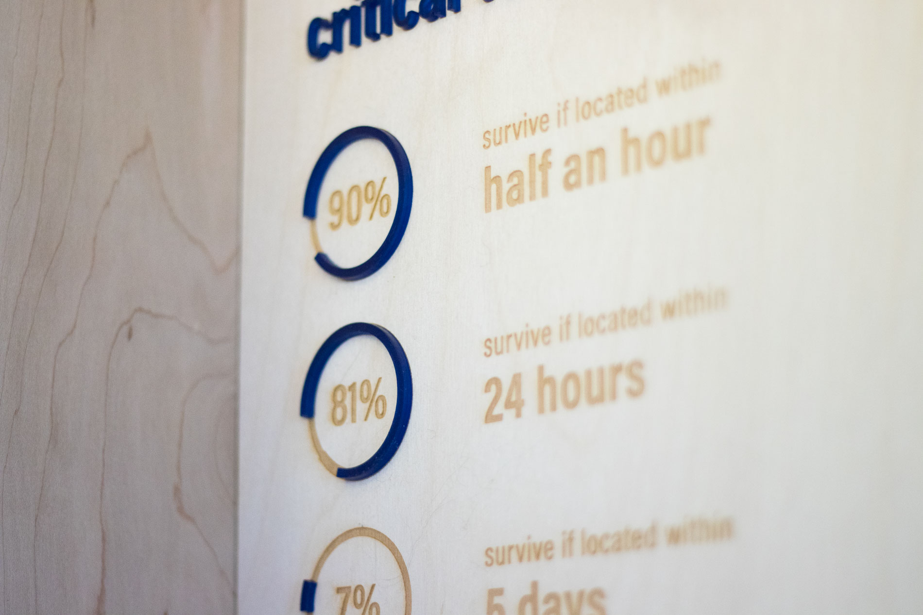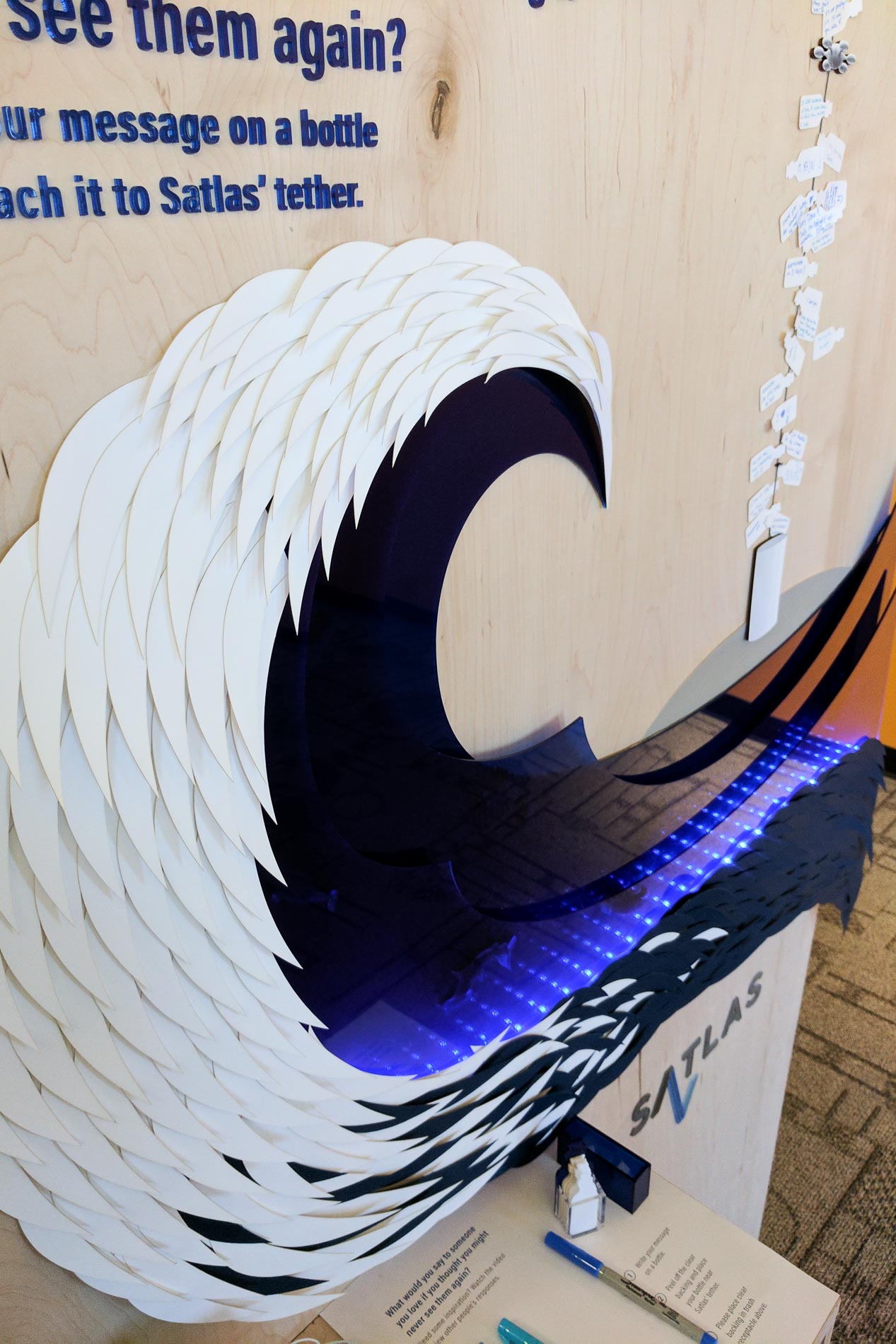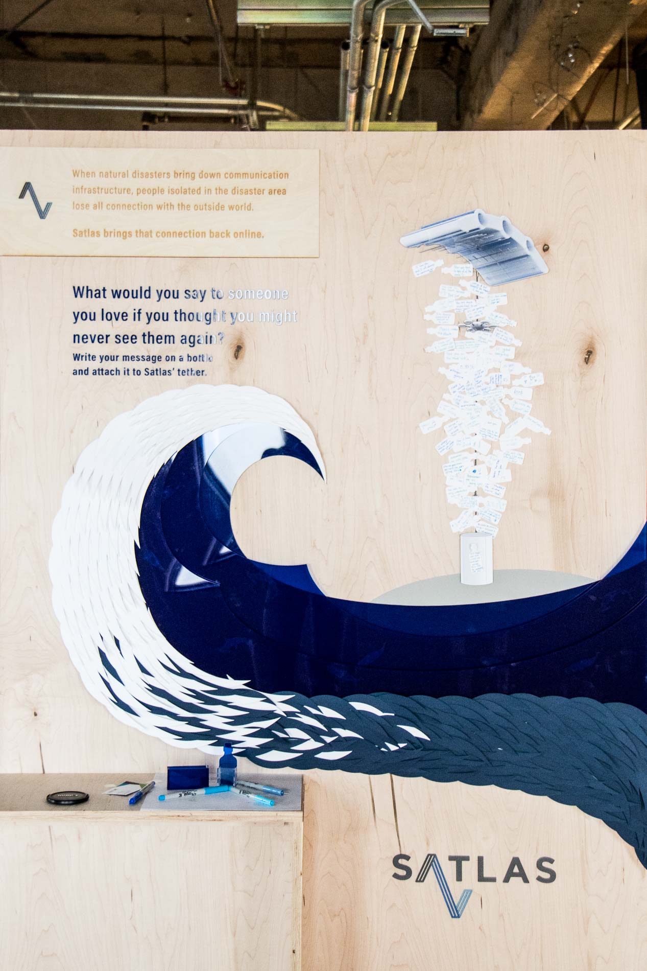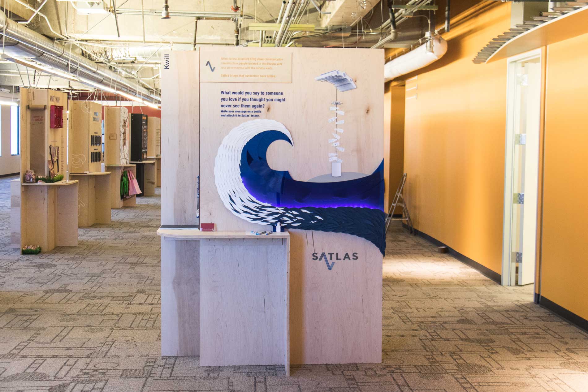 The following images are of a Satlas exhibit, which addresses an audience that identifies with our product as potential disaster victims. The intention of the exhibit is not to sell Satlas products, as the audience is not our primary target, but to bring awareness to the reality that the future is unknown, and now is the time to seize the day.